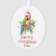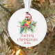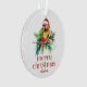 Cette conception festive de thème de Noël tropical présente - Joyeux Noël - une belle typographie rétro rouge avec un oiseau de Noël tropical portant un chapeau de Père Noël.