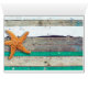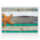 Il s'agit d'une étoile de mer sur une planche rustique, et la série de produits comprend des menus mariages, des invitations et des cadeaux qui accompagnent notre collection de cadeaux et d'idées sur la plage.