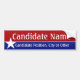 Êtes-vous en train de vous présenter au bureau et juste besoin d'un ou deux autocollants pare-chocs ? Ou - Voulez-vous montrer votre soutien à un candidat avec un autocollant personnalisé? Remplissez l'information... et si vous souhaitez modifier la police ou encore la modifier, cliquez sur —Customisez-la!— pour effectuer ces réglages.