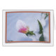 A Spring blooming pink and orange tulip bends under the weight of a day of snow showers. This orange and blue framed photographe is set over a white background. Personalize the inside text by filling in the template field under personalize it, remove the text leaving room for a handwritten note or click Customize it to select a font style, size and color you prefer.