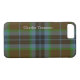 Élégant boîtier iPhone 7 boîtier de téléphone mate fait dans un traditionnel écossais brun, bleu et vert plaid du clan Thomson. Le texte blanc qui tourne verticalement, sur le côté gauche, est prêt à être personnalisé. Un moyen élégant et idéal de protéger votre téléphone intelligent, et de faire une idée cadeau formidable.