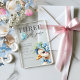 the story of a joyful milestone— very first birthday, a celebration wrapped in love, warmth, and a touch of whimsy. The design centers around a charming goose, lovingly illustrated as if plucked from the pages of a beloved children’s book. He’s not just any goose—He’s “one silly goose,” dressed for a party in a striped hat and floral crown, proudly clutching a Blue balloon. His expression is wide-eyed, innocent, and full of personality—just like a one-year-old discovering the world.
