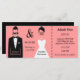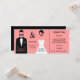 Le billet de la fête du wedding shower Fun Jack et Jill présente la silhouette d'un marié dans un smoking noir. Il y a aussi la silhouette d'une mariée dans une robe blanche mariage. Les visages de la mariée et du marié sont manquants et à la place ont le texte Jack et Jill sur chacun, respectivement. Il y a un endroit pour ajouter le nom des mariés en police rose dans son smoking et le nom des mariées en police noire dans sa zone de robe mariage. Il y a du texte personnalisable pour ajouter la date et l'heure. Sur le côté droit du marié et de la conception de la mariée est une ligne pointillée noire afin que l'invitation puisse être utilisée comme style de billet et coupée comme le talon payé pour l'entrée dans le wedding shower Jack et Jill. Il y a du texte personnalisable en police noire dans la zone du stub où vous pouvez ajouter les frais d'entrée, l'adresse, l'heure, etc. C'est un ticket de douche Jack and Jill Wedding Party amusant et unique!