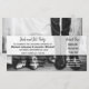 Le billet de style invitation pour la fête de mariage de Jack et Jill présente une photographie de fond des pieds d'une mariée et d'un marié dans leurs chaussures et vêtements de mariage. Sur la moitié supérieure du billet, une zone blanche délavée avec une bordure noire est prévue pour votre texte. Le texte est personnalisable en police noire et blanche. Le billet est divisé en deux par une ligne pointillée, parfait pour être coupé et utilisé comme talon de billet d'entrée pour la fête de mariage de Jack et Jill après que l'invité a payé pour le billet. La partie talon comporte également les détails de la fête de Jack et Jill tels que la date, l'heure et le lieu. Le verso du billet comporte la même photographie en noir et blanc de la moitié inférieure d'une mariée et d'un marié dans leurs vêtements de mariage. Cette invitation de style billet est parfaite pour une entrée payante à la fête pour récolter