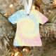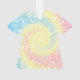 Cet ornement de Noël présente un beau tourbillon hippy de teinture de cravate rose pastel, jaune et bleu sur un ornement en forme de tshirt ! Parfait pour quelqu'un qui aime la teinture cravate ou un teinture à cravate thématique.