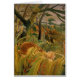 Tigre dans une tempête tropicale ou surpris! (1891) d'Henri Rousseau est une peinture vintage de portraits d'animaux d'art post impressionnisme. Un tigre de chat exotique, sauvage, éclairé par un éclair. Ce prédateur se prépare à rebondir sur sa proie au milieu d'un orage violent dans la jungle tropicale. À propos de l'artiste : Henri Julien Felix Rousseau (1844-1910) était un peintre impressionniste du Post dans le genre naïf, la manière primitive ou le primmitivisme. Il était aussi connu sous le nom de Le Douanier, l'agent des douanes.
