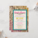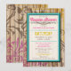 Couples de couleur tropicale Invitations de douche avec des fioritures tourbillonnant dans un style de filigrane tatouage sur une texture de bois, et imprimé sur mesure avec vos détails personnalisés de douche. Conçu en rose fuchsia, turquoise/turquoise et jaune foncé.