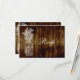 Cartes de réponse RSVP. Image tamponnée d'un pot Mason en blanc, sur une image de fond en planches de bois brun foncé (pas de bois réel). Un thème extérieur semi-grunge pour un mariage d'été à la campagne ou dans une cabane. Les planches de bois brun chocolat foncé d'une clôture ou de planches de sol antiques contrastent avec une image découpée en blanc tamponnée d'un pot Mason avec baby's breath et autres fleurs sauvages en dentelle. Tous les modèles sont la propriété de www.CustomInvitesOnline.com