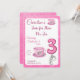Time for Three Par-tea 3rd Birthday Invitation. This adorable illustration is perfect for your sweet little girl’s third birthday party. Gather up your family and friends and celebrate the third year. Sweet soft pastel and blush pink surround a teacups and balloons. Get out the tea set and add some pink lemonade. Let your girl be a hostess on her special day. Let her serve the “tea” and the cake. This par-tea is bound to be sweet.