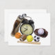 Différents équipements sportifs disséminés autour d'un réveil à la mode ancien
