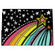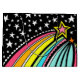 Un voyage cosmique lumineux et coloré dans l'espace. Une grande étoile de tournage qui perce le ciel noir rempli d'étoiles blanches brillantes.