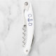Ce tire-bouchon à thème nautique comporte deux initiales monogrammées en bleu marine avec une ancre entre elles. Fait une faveur unique à donner aux clients mariages. Conçu par l'artiste Susan Coffey.