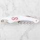 Infinity symbole of continuous stream of red pouring into glass glass glass on white background.