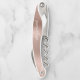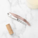 Ce tire-bouchon personnalisé distinctif est doté d'un arrière - plan en métal brossé or rose moderne. Customisez-le avec un nom en blanc cursive écriture style écriture manuscrite.