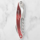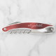 Ce tire-bouchon personnalisé possède un arrière - plan en métal brossé rouge moderne. Customisez-le avec un nom en blanc cursive écriture style écriture manuscrite.
