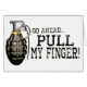Avancez, tirez mon doigt. Pour le la plupart la traction du doigt d'une autre personne, particulièrement si elle est papa ou même un oncle est fou humour idiot souvent ayant pour résultat seulement un pet qui causera sûrement quelques rires bébêtes et peut-être même rire répandu. Notre traction mes caractéristiques de conception de doigt une vieille grenade à main avec le slogan classique. Précaution : Prenez garde de la personne qui porte cette pièce en t comme vous avez été prévenus qu'une explosion inimaginable de méchant vous surmontera sûrement devrait vous décider de tirer ce doigt.