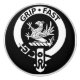 Dessin blanc du blason du Clan Leslie sur fond noir.