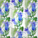Beau tissu à motifs floraux Campanula bleu et vert. Tissu à motifs répétitifs botaniques dans les tons bleu et vert sur un arrière - plan léger. Image originale aquarelle de Sarah Trett.