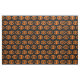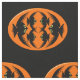 Ce magnifique tissu artisanal est parfait pour tous vos projets d'artisanat. Le design est composé d'un ovale orange avec six corneilles. Chaque corbeau a des yeux jaunes avec des élèves noirs et des ailes étirées. Les corbeaux volent vers l'autre formant une forme ovale. L'arrière - plan est noir.