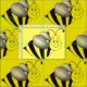 Le tissu présente des bourdons noirs et jaunes sur un arrière - plan jaune.