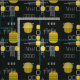 Tissu Abstrait atomique noir jaune