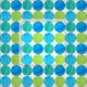 Tissu Abstrait bleu vert blanc cercles