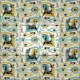 Mon illustration vectorielle originale de chats abstraits, cubes, starbursts, boomerangs, lozenges, et plus encore, en turquoise, or, gris chaud et noir sur blanc/tan.