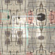 Ce tissu Abstrait moderne du milieu du siècle est une réplique d'un tissu vintage des années 1950. L'arrière - plan est écru avec des lignes noires et or. Le tissu présente également des formes d'art moderne gris et rose. C'est une explosion du passé ! C'est le design parfait pour tous ceux qui aiment les objets avec une atmosphère rétro.