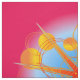 Bannière avec Baha'i citée d'une prière de la Báb avec un design des planètes et une étoile neuf pointes.