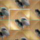 C'est un motif amusant avec un chien Papillon mignon sur différentes nuances d'or, de bronze et de brun. Les motifs foncés et clairs font une illusion optique de profondeur, il semble que le chien Papillion se tient sur des escaliers.