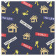 Tissu bleu marine amusant imprimé avec maisons, clés et panneaux d'agents immobiliers tels que SOLD, FOR SALE et TO LET. Idéal pour faire votre propre agence immobilière coussin, masques, nappes et plus encore. Vous pouvez changer la couleur arrière - plan du bleu marine à n'importe quelle couleur qui convient à votre goût.