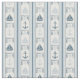 Ce tissu motif est orné du slogan "Ahoy it's a boy" ainsi que de graphismes nautiques tels que voiliers et ancres et rayures verticales dans les tons bleus contre un arrière - plan crème.