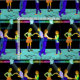 Balancez les ajouter de danse aux projecteurs et une piste de danse avec des symboles de musique 9" tissu carré. Celui-ci est a classé aux carrés de 9 pouces. Il y a d'autres versions de cette conception avec une plus petite copie.