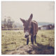 Un âne mangeant l'herbe sèche où le champ entier est couvert d'herbe verte