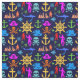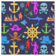 Tissu Ancres, Helms, Pirates. Motif nautique coloré