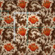 Tissu dans un motif floral vintage de damassé de William Morris des fleurs et du feuille d'anémone, numériquement augmenté et coloré - feuille brun chocolat profond, et fleurs aux nuances de la rouille oranges et or mol sur un arrière - plan beige moyen