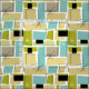 Tissu Aqua Blue Yellow Rectangs Motif du milieu du siècl
