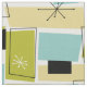 Ce fabuleux tissu moderne du milieu du siècle est parfait si vous voulez un projet de couture coloré audacieux. Ce design présente des rectangles abstraits bleu aqua, vert avocat, jaune et bronze, ainsi que des reflets de starbursts noirs et blancs.