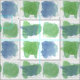 Tissu de forme douce et jolie décoré d'un motif de style géométrique dans les tons verts sauge et bleus peints en aquarelle avec crayon coloré.