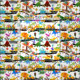 Aquarelle Dinosaure Construction Enfants Motif mignon. Dinosaures amusants faisant des travaux routiers.