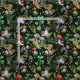 Aquarelle peinte motif de plantes verts de bois, champignons et baies colorées.