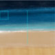 Artistic hand painted brush strokes abstrokes seascape, beach design, filled with navy-blue, indigo, teal, sea, turquoise, gold, sand color, watercolor painting, brush painted splatters and color paint splashes, creating a seaside feel. This earth ocean inspecred, contemporain, unique artwork is perfect for a modern decor.