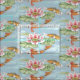 Tissu Aquarelle Tropical Blue Koi & Lotus Fish Pond