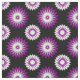 Tissu avec un motif de fleurs géométriques moderne sans couture dans les couleurs du drapeau de la fierté d'asexualité ; un motif de fierté d'ace noir, gris, blanc et magenta/violet, sur un fond noir