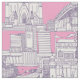 Australian toile de jouy, originally drawn in ink. Includes Sydney harbour Opera house and Luna Park, Perth Temple, Melbourne skyline, Adelaide Chinatown, Townsville Maritime Museum, Wollongong lighthouse. heart reef, Bondi beach.