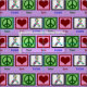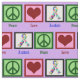 Tissu assez pourpre avec des signes de paix, des coeurs et le ruban multicolore de sensibilisation sur l'autisme pour les personnes autistes tombant sur le spectre.