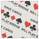 Faites d'autres faire une double-prise avec une dose d'humour tordu de pont de joueur de carte quand vous créez avec ce tissu comportant les quatre costumes de carte avec l'énonciation "avez des cartes jouerez au bridge". Pont mémorable indiquant le tissu pour tout joueur de pont avide !