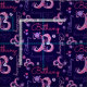 Monographie graphique moderne lettre initiale B et tissu à motif de nom. Jolie lettre d'art gribouillé B convertie en graphique avec votre propre nom court. Design dessiné à la main, agrémenté de fleurs et de coeurs. Personnalisez avec votre propre choix de nom (s'il vous plaît noter que tous les noms ne s'adapteront pas en raison de la nature de la police) actuellement lit Bethany, d'autres longueurs de nom sont disponibles, si vous avez besoin d'aide contactez-moi, heureux de poster un pour votre nom. Tissu dans les tons rose et violet sur un arrière - plan bleu foncé marine qui peut être changé si nécessaire. Une excellente façon de personnaliser vos projets de couture et de couture. Idéal pour les filles à coudre personnalisées articles. Art et design originaux par Sarah Trett pour www.mylittleeden.com
