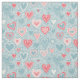 Tissu Baby Shower Fleur Coeur Bleu Poussiéreux Rose Mign
