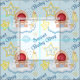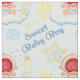 Adorable Bawling Baby Boy assis sur un nuage moelleux avec biberon bébé, empreintes et soAutres sur pastel bleu et blanc pois arrière - plan. Des accents d'étoiles amusants. Texte dit Sweet Baby Boy. Conception disponible en version bébé.